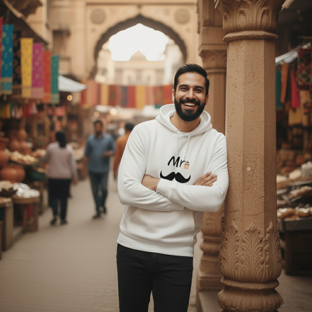 The Mr. Hoodie is tailored for the man who keeps it sharp and simple. Featuring a minimalist mustache graphic, this regular-fit hoodie is all about comfort with class. Whether its a brunch date or a casual stroll, hes repping his title like a boss.